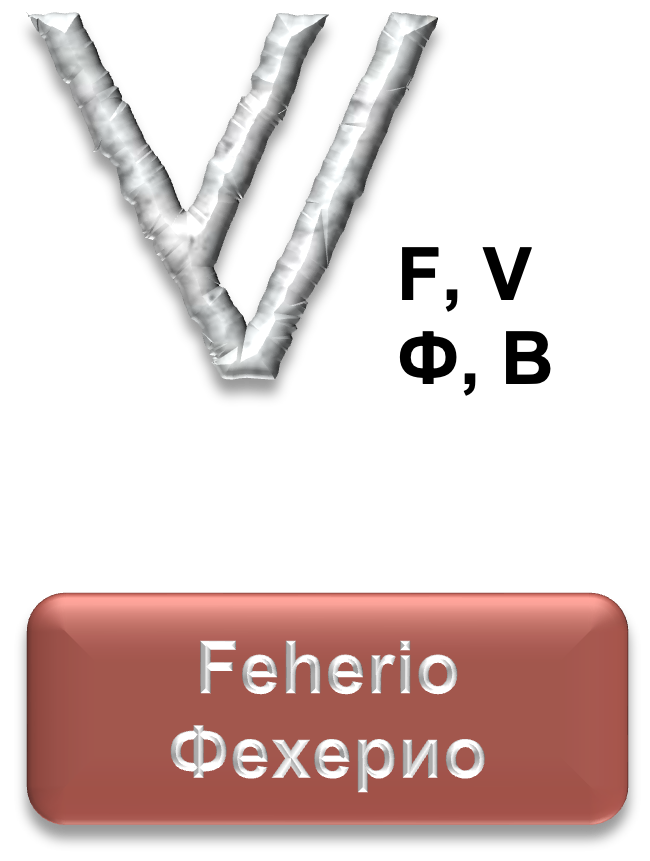 Die atlantische Bezeichnung „Feherio“ entspricht dem nordischen „Fehu“. Beide teilen denselben Bedeutungsraum; „Feherio“ wird jedoch als abstrakter Rinderkopf in Frontalansicht dargestellt.